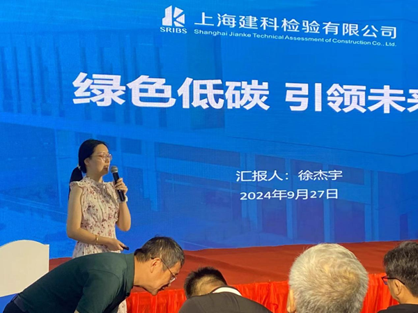 大会主题演讲环节中,来自不同会员单位的代表依次上台,分享他们各自的见解和展望。由上海建科检验有限公司徐杰宇就建筑玻璃绿色产品认证与绿色建材分级评价,绿色低碳建材评估作了简要的介绍,对绿色产品的入库流程进行了详细讲解。