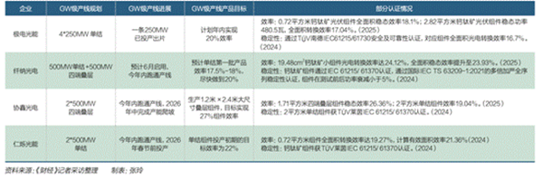此外,协鑫光电、纤纳光电、仁烁光能的吉瓦级产线也在紧密筹备中。