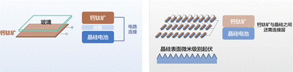 所谓四端叠层,是在玻璃基底上制备钙钛矿层,然后将其扣在组装好的晶硅电池上,二者各自工作,并联发电。与此相对应的两端叠层,则是在每片晶硅电池表面制备钙钛矿层,再将电池片串联。简单理解,四端是在组件环节叠层,两端则是在电池环节叠层。