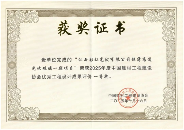 此次获奖,充分体现了项目在设计创新、技术应用与工程实践方面的卓越表现,也标志着彩虹在光伏玻璃领域的技术实力与行业影响力获得权威认可。江西光伏超薄高透光伏玻璃一期项目是彩虹集团积极响应国家新能源产业政策,落实“双碳”责任目标,在上饶重点投资的项目。项目可实现年产光伏玻璃1.5亿平方米,能匹配约 17GW 光伏组件的生产需求,产品广泛应用于大型地面光伏电站、工商业分布式光伏项目及BIPV(光伏建筑一体化)等多元场景,为我国光伏产业的高质量发展与 “双碳” 目标的实现注入强劲动力。