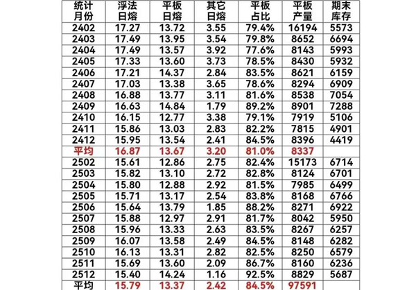 近二年玻璃日熔量与平板产量